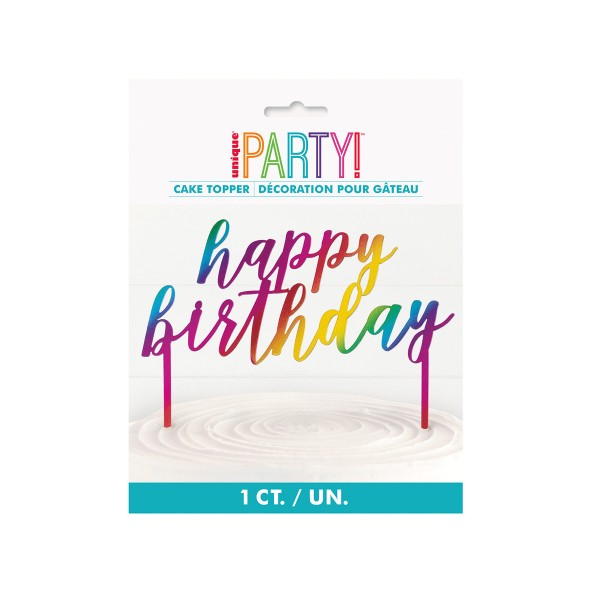 Cake Topper Happy Birthday Πολύχρωμο Ιριδίζον
