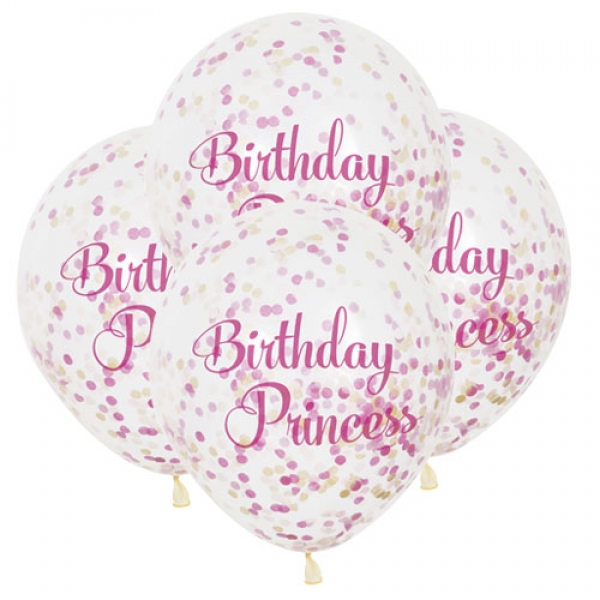 Confetti Balloons-Birthday Princess-6 Μπαλόνια Γενεθλίων Με Ροζ-Χρυσό Κομφετί-Unique
