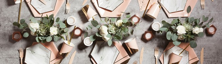 Χάρτινα Πιάτα Ροζ Με Χρυσό Party Deco